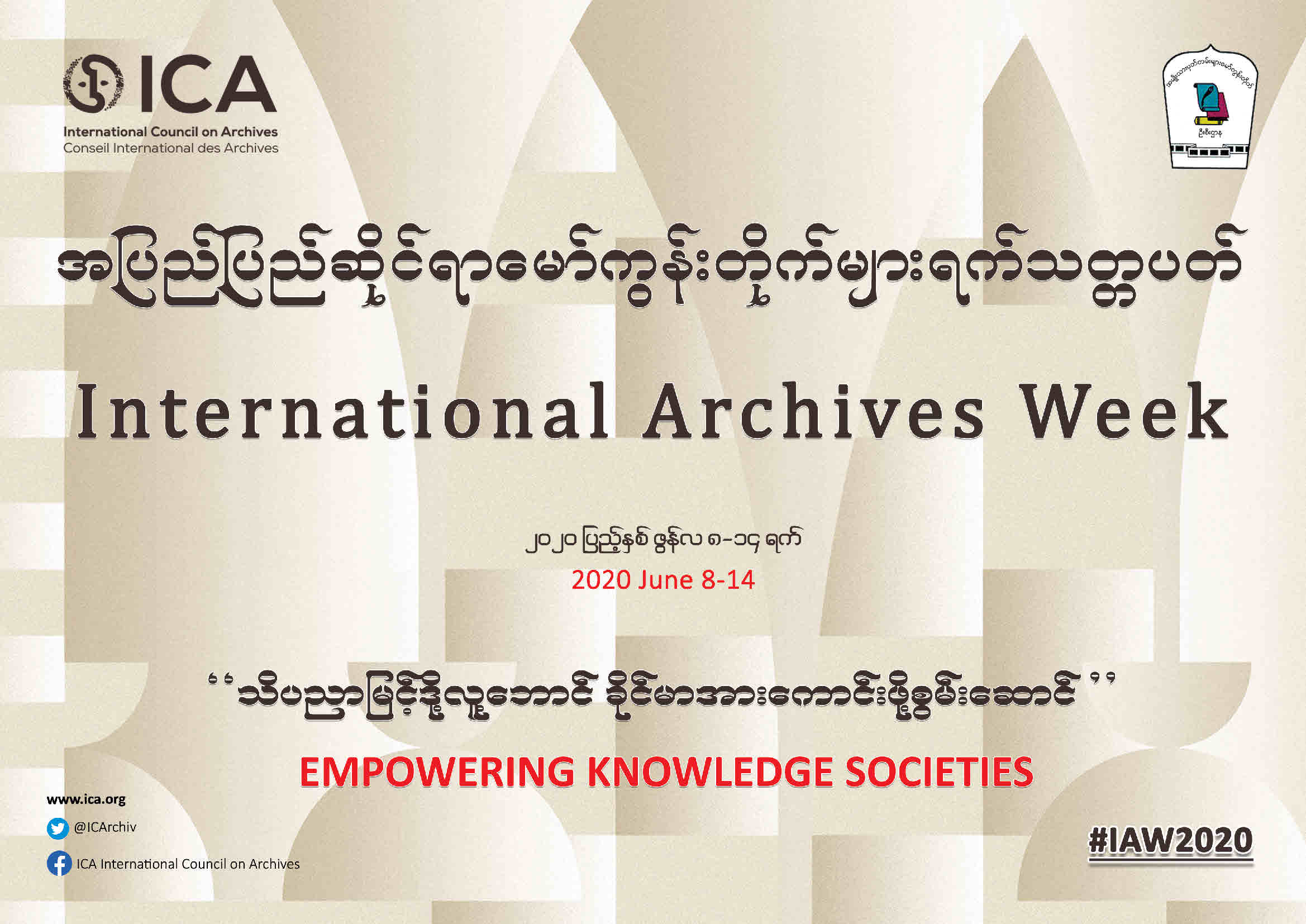 အမျိုးသားမှတ်တမ်းများမော်ကွန်းတိုက်ဦးစီးဌာန Website www.nam.gov.mm ၌ အမျိုးသားရေးရာတန်ဖိုးနှင့် သမိုင်းတန်ဖိုးရှိ မော်ကွန်း/ မှတ်တမ်း e-Resources များအား (၉-၆-၂၀၂၀) ရက်နေ့မှ စတင်၍ Online အသုံးပြု ရှာဖွေခြင်းဝန်ဆောင်မှုကို စတင်အသုံးပြုနိုင်ပြီဖြစ်